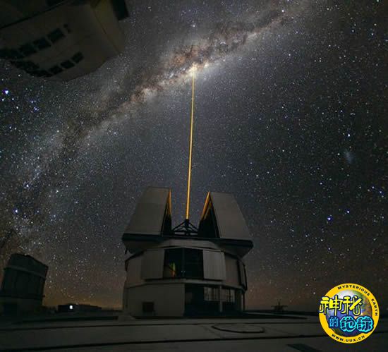 美国国家地理一周太空图片精选:月球发现天然桥拱 来源: 神秘的地球 时间:2010年9月14日 11:31 2. 剑指苍穹 剑指苍穹 8月份,在位于智利的欧洲南方天文台甚大望远镜阵列中,雅普望远镜所射出的一束激光有如一道利剑直指苍穹,似乎已将银河系刺穿。 雅普望远镜的激光束在地球大气层之上约90公里的太空中制造了一颗假星。这种所谓的“激光导星”可以帮助天文学家修正望远镜所拍摄的太空图片因大气层干扰所产生的模糊效应。据欧洲南方天文台网站介绍,利用激光对准银河系的中心,天文学家们可以更好地监测星系的内核。在银河系内核区域,那里有一个超大质量黑洞正在不断地吞噬周围的气体和尘埃。 上一页12345下一页 上一篇 下一篇