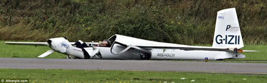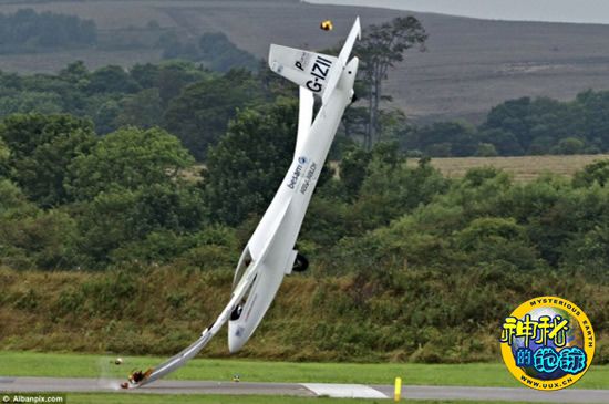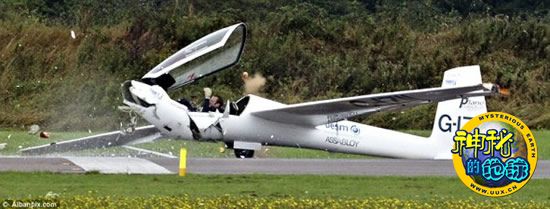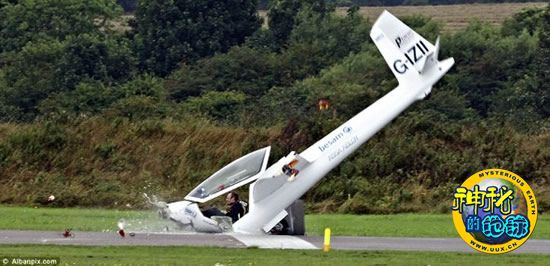 上月末,一架滑翔机在空中表演特技时,突然重重跌落在跑道上,机身几乎垂直跌落在地面上,驾驶舱被震碎,然而令人难以置信的是,35岁的飞行员迈克·纽曼竟从飞机残骸里爬了出来,虽然他的椎骨3处断裂,但是医生认为他会完全康复。