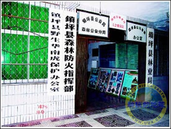 镇坪县林业局。一块崭新的“华南虎保护办公室”的牌子与林业局牌子比肩而立。办公室工作人员说,这个办公室一个月前就成立了,只是最近才挂牌。刘宁张松摄