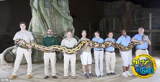 2011年吉尼斯世界纪录部分候选 来源: 神秘的地球 时间:2010年9月17日 13:17 3.世界最长的蛇 世界最长的蛇 这条巨蟒生活在美国俄亥俄州的哥伦布动物园里,它体长24英尺(7.32米),被评为全球最长的圈养活蛇。 上一页123456789下一页 上一篇 下一篇