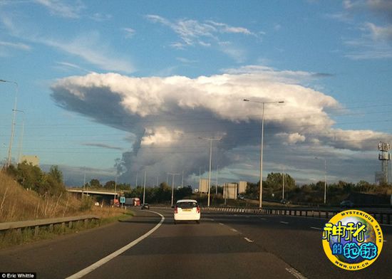 55岁的埃里克大约在下午6点30分看到福克斯通上空升起数千英尺高的“蘑菇云”,当时他正在肯特郡M20路上驱车行驶。起先他以为福克斯通被投下核弹,但很快他意识到这是积雨云,于是,他通过挡风玻璃拍下一些照片。来自多佛的埃里克已是一个孩子的父亲,他说:“我在艾塞克斯上班,当时我正沿着M20路开车回家,在驶入梅德斯通市附近的第八路口时,我看到了一个巨大的蘑菇云。起先,我以为福克斯通被投下核弹,作为一位健康和安全顾问,我认为核爆炸云是我们的最大威胁。它看起来就像投下一枚核弹后的蘑菇云。我拿出手机拍了几张照片。我以前从未想过拍云彩,但是,这一次它是那么奇特。我不确定还有别人看到。它的形状和我看到的角度与太阳照射的方式相结合才造就了这一逼真的‘蘑菇云’。”