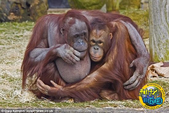摄影爱好者加里·凯尼恩跟一些朋友一起在英国布莱克浦动物园游玩时,无意中捕捉到这对猩猩的温情一幕。两只猩猩用长长的胳膊彼此揽着对方,显得非常惬意,而它们的其他同伴正在到处闲逛,向彼此扔稻草。44岁的加里从事网上销售,他已经有10年的摄影经验,能有幸拍到这种感人至深的爱情画面,他感到非常欣喜。