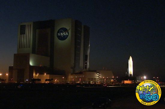 发现号夜幕中离开美国宇航局肯尼迪航天中心的装配大楼前往发射架