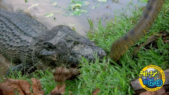 黑凯门鳄袭击绿色水蚺