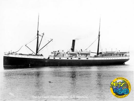 【巴伦西亚号(The SS Valencia)】巴伦西亚号是一艘在906年沉没在英属哥伦比亚·温哥华海岸附近的船。当时轮船在门多西诺角遭遇了恶劣天气,还触了礁,船身开始进水。船员们马上放救生艇解救船上的108名乘客,但是仍有人不幸遇难。巴伦西亚号最终沉没,船上180余人只有37个幸存下来。5个月后,一名渔民在一个洞穴中发现救生筏和8具人骨,警方展开调查,但是一无所获。这个戏剧性的故事就这样告一段落,而这个结局也最终为巴伦西亚号的诡异故事提供了来源。水手们常常说在巴伦西亚号触礁附近海面上会看见漂浮的幽灵,而且在巴伦西亚号沉没27年后,在巴克利海湾居然发现了一艘当年的救生筏,甚至还保留着原来的油漆涂层。