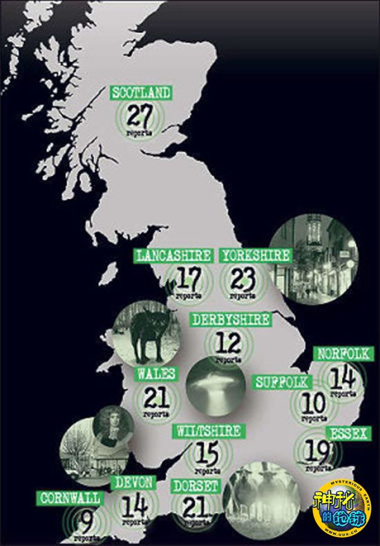 英国一年来“超自然事件”发生地点分布图