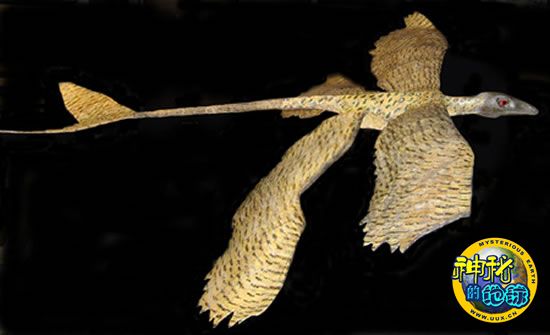 一个生有4个翅膀的恐龙的泡沫塑料模型揭示了它如何在树林中滑翔。