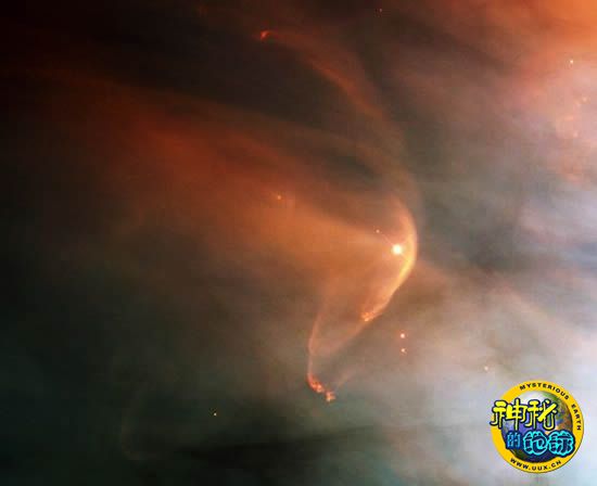 Shown in a Hubble Space Telescope image, the "astrosphere" around the star L.L. Orionis approximates the heliosphere around our solar system.