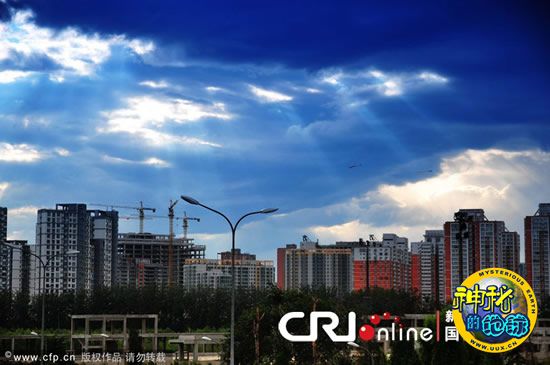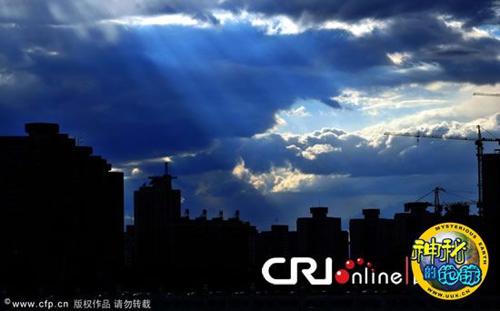 北京上空出现"光瀑"景象 来源: 神秘的地球 时间:2010年10月03日 16:26 2010年10月2日傍晚,阴转多云天气,北京上空出现了“光瀑”景象,乌云挡不住太阳的光芒,随着太阳逐渐西下,光芒亦真亦幻千变万化。 CFP 上一篇 下一篇 TAG: 光瀑