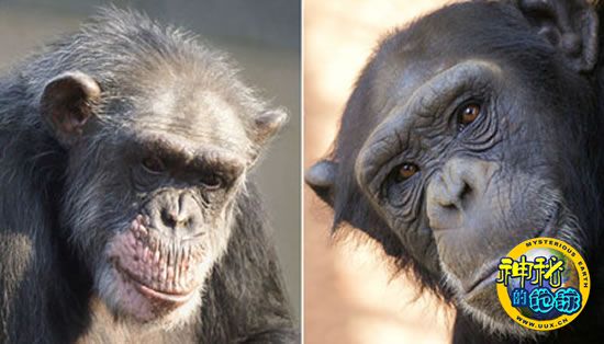 人类并不是唯一一种喜欢用榜样鞭策自己前进的动物。与我们亲缘关系最近的覆盖了毛发的黑猩猩同样也热衷于模仿享有威望的同类的行为。在一项新的研究中,生物学家让一群黑猩猩观看一只年轻的、社会地位较低的黑猩猩,与另一只年老的、社会地位较高的雌性黑猩猩,在接到食物时所表现出的完全不同的行为。(图中左侧为高级别的Ericka,右侧为低级别的Georgia。)结果显示,其中一只受过训练的黑猩猩会将一根塑胶棒放到一个有斑点的容器中,而另一只黑猩猩则会将塑胶棒插入一个有斑纹的直筒中。