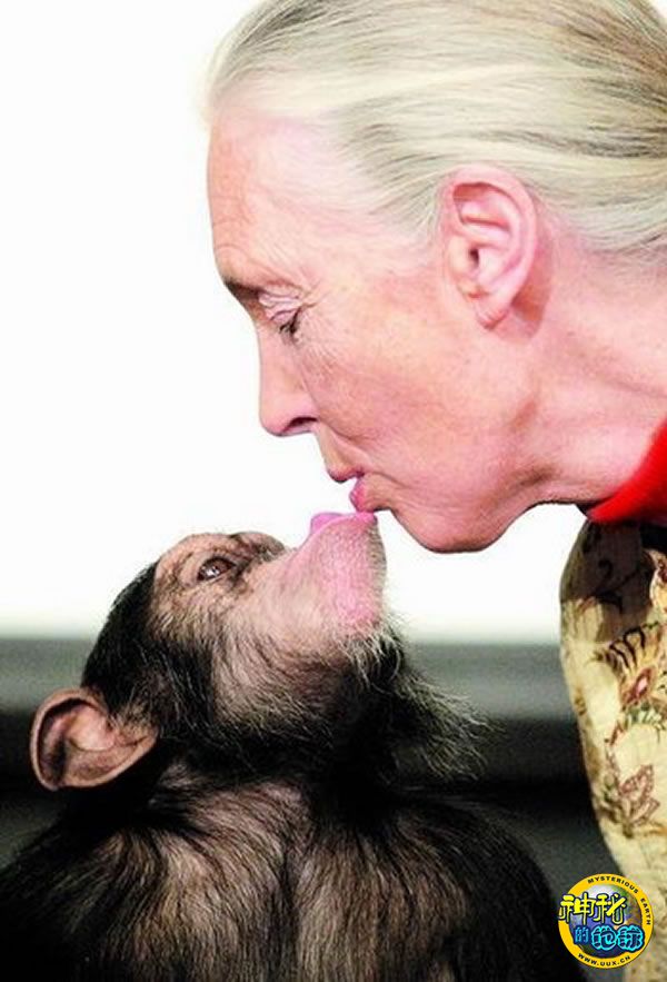 终于,珍·古道尔的机会来了,一只被她称为“灰胡子戴维”的雄性黑猩猩向她伸出了“友谊之手”。其实之前,珍·古道尔和这只经常独自活动的黑猩猩已经和平共处了很久,折下树枝钓白蚁、把树叶卷曲起来在树洞汲取积水,戴维的一举一动都被珍·古道尔作为人类研究灵长类动物第一手资料记录了下来。“它们也有很多人类社会生活中常见的体态和手势,比如亲吻、拥抱、握手、互相拍肩膀、摆架子、挥拳、脚尖旋转。”但最让她难以忘怀的,是“灰胡子戴维”那种沉着、稳重的个性,炯炯有神的眸子,以及内在的威严。“这一天,戴维沿着一条小道走开,我跟了上去。之后它钻进浓密的灌木丛,我被藤条缠住,心想肯定跟不上了,可是后来,我发现它坐在水边,似乎是在等我。”这是他们第一次如此接近,戴维用沉着的目光注视着珍·古道尔,像在用眼睛告诉她,“嗨,我们认识很久了。”和戴维并肩坐下,珍·古道尔从地上捡起一枚红透了的果子,用手心递给戴维。“它看了看我,然后伸手把果子拿开,扔在了地上,却轻轻地握了握我的手。”这种比文字更古老的语言,清楚地传递了信息——戴维不需要果子,它完全了解珍·古道尔的用心,知道她没有恶意。