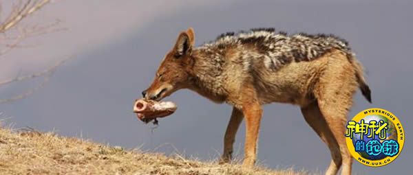 面对强大的对手,饥肠辘辘的豺没有丝毫退缩,奋力发起还击,迫使秃鹫悻悻地飞走了