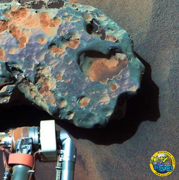 在美宇航局探测器“机遇”号9月24日拍摄的这张假色图中,一块火星岩石展现出奇特的外形。在通过“机遇”号的显微成像仪和α粒子与X射线分光仪对这块火星岩石进行检查后,美宇航局火星探测任务小组确定,它是一块镍铁陨石。他们将其命名为“Oileán Ruaid”,即一座爱尔兰岛屿的盖尔语名称。
