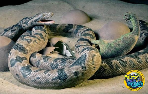 古生物学家发现一条6700万年前巨蟒的化石。这条巨蟒正盘绕在一堆恐龙蛋的旁边,在巨蟒包围圈中还有一只刚刚孵出的小恐龙。这是第一次发现蛇类吃恐龙的证据。古生物学家感叹,“这是我一生中最惊人的一次发现。”