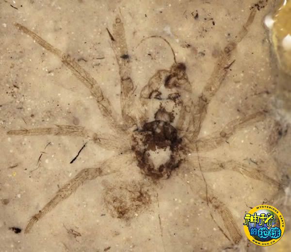 这是保存最完好的蜘蛛化石。它来自中国,年代可追溯至1.65亿年前的侏罗纪中期。这种蜘蛛学名为Eoplectreurys gertschi。据古生物学家介绍,这种蜘蛛化石甚至比已知仅有的其他两种较古老蜘蛛标本要早大约1.2亿年,而且细节更清晰。由于蜘蛛身体较脆弱,很难保存,因此蜘蛛的化石非常罕见。这只蜘蛛因为被精细的火山灰掩埋,所以它脆弱的外骨髓并没有被破坏,只是被压扁而已。