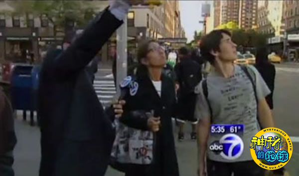 这则看上去毫无科学根据的预言在美国网上流传甚广,但似乎没有多少人把它当真。但是在13日下午,真有疑似UFO的奇特发光物体出现在纽约的上空,吸引数千行人驻足围观,还导致当地交通一度瘫痪。目击者表示,一个外形很像飞碟的银色闪光物在距离地面1500多米的空中停住,看上去非常诡异。在UFO出现几分钟后,有人立即在twitter上发布了照片,随后youtube网站上也出现了视频。