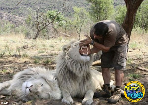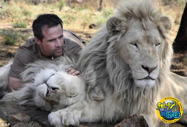 他对这些动物非常友好,经常给它们说话,爱它们,尊重它们,最终竟使这个狮群认为他就是它们中的一员。这些白色狮子苍白的皮毛,是由一种罕见的遗传变异引起的。