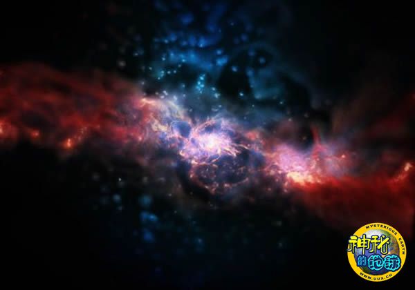 正如我们在这张艺术概念图所看到的情形,冷气体流(红色)涌入螺旋星系,给恒星的形成注入能量,与此同时,新生恒星的强辐射产生扰动(蓝色)。这张于上周公布的照片显示了一种形成恒星的质量巨大的星系,这种星系被认为在早期宇宙十分常见。而根据日前发表于《自然》杂志上的最新研究,此类星系还存在于地球附近更为“年轻”的区域。该发现表明,无论是“年轻”还是“年老”的星系,它们的扰动都是由恒星形成期间释放的能量驱动的。