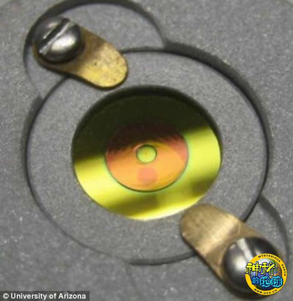 在一颗玻璃片上经过精确数学计算的位置上,精心放置钻石制成的小片
