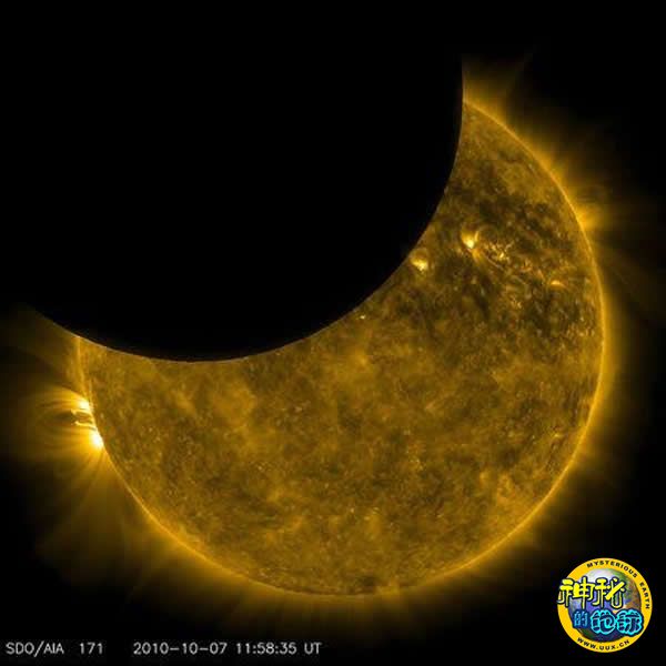 美国国家地理一周精彩太空照:巨型星云 来源: 神秘的地球 时间:2010年10月27日 10:00 2.一侧被挡住的太阳 一侧被挡住的太阳 10月7日美国宇航局的太阳动力学观测卫星拍到的这张照片,显示的是月球的黑色圆盘遮住了太阳的一部分,形成偏食。这个轨道望远镜正在从远紫外区给太阳拍照时,无意中捕捉到月球凌日的壮观场面。月球显然足够大,可以挡住太阳,这就如同在地球上观看日食一样,月球距离观测者——太阳动力学观测卫星并不近。 上一页123456下一页 上一篇 下一篇