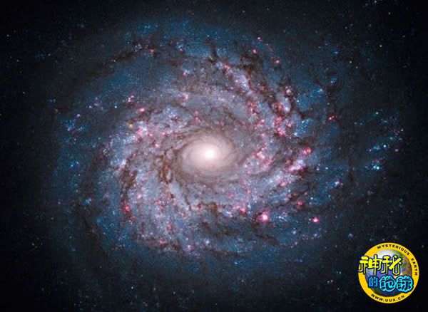 这张图片是用最近从哈勃太空望远镜上摘掉的一台照相机拍到的照片和接替它的照相机拍到的照片制成的合成图,该图在19日公布,显示的是螺旋星系NGC 3982。这些照片是在2000年3月到2009年8月间拍到的,它们的合成图很好地展现了这个正在形成恒星的星系的内部细节,该星系距离地球大约6800万光年。NGC 3982的尘埃臂上布满年轻恒星团(蓝色)和炙热的氢气云团(粉色),这些地方是新恒星的诞生地。