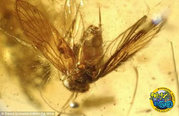 据悉,这块琥珀中已鉴别出多种节肢动物,其中多数是昆虫,但也包括蜘蛛和螨虫。