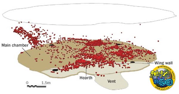 袭击者们将肢解的和焚烧过的身体组织丢弃在了圣岭的一个窖房之内。图片展示了发现骨头碎片的地点(红色)