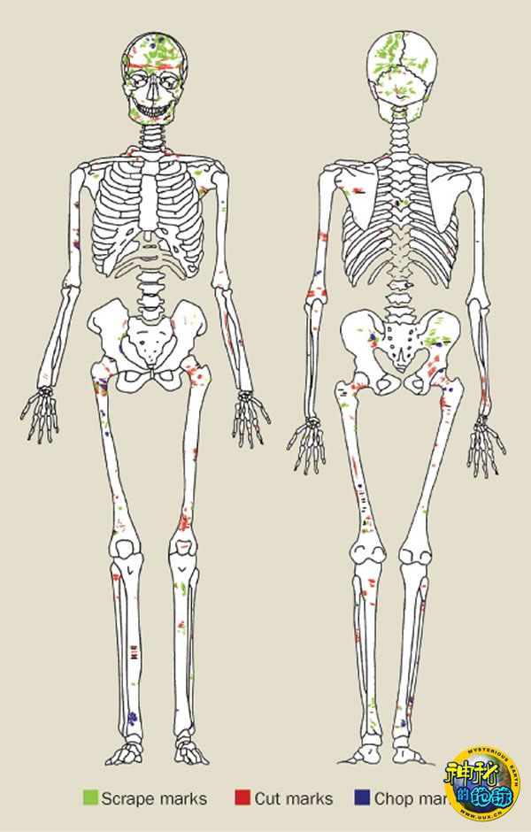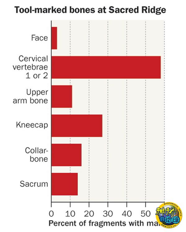 工具痕迹出现在很多类型的骨头上,该图展示了所选的带痕迹碎片的比例