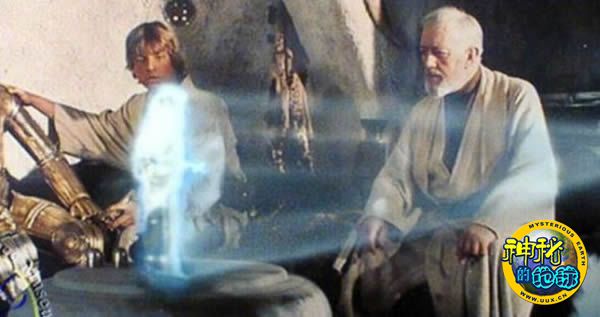 这是第一部《星球大战》影片里的场景,莱娅公主发出的信息,被以全息图的形式发送给卢克-天行者和欧比旺-肯诺比。