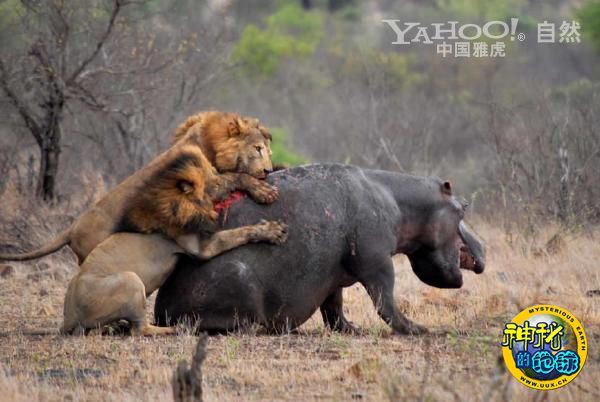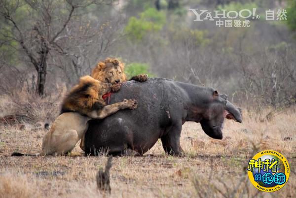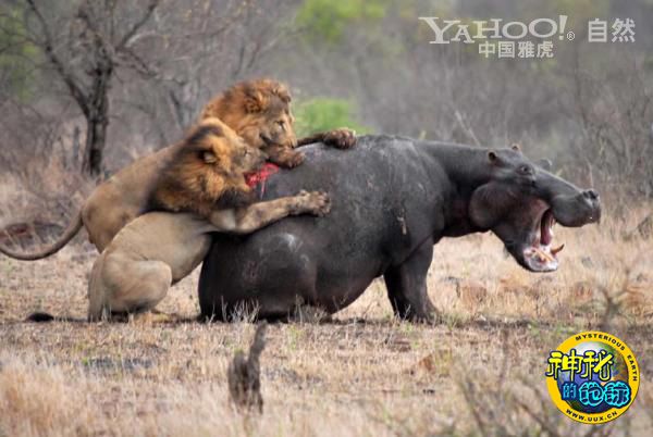 雄狮猎杀河马