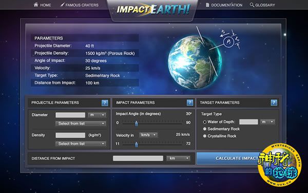 想要毁灭地球吗?一家新的网站可以让你选择作为终结者的方式。只需要输入一些参数,例如直径、密度以及速度,Impact: Earth!(碰撞:地球!网站http://www.purdue.edu/impactearth)便会发射一颗彗星或小行星冲向我们的星球。惟恐你对这一模拟——一块巨大的岩石砸在我们头上——还不满意,这家网站还将提供劫后的数据,包括撞击坑的大小、火球的范围甚至海啸的高度——如果外来天体撞击到海洋。这家网站是2002年建立的一个供美国宇航局(NASA)和国家安全局使用的碰撞计算器的更新版。新版本更加视觉感更强且用户界面更为友好,使得即便是一个普通人也能够砸烂地球。