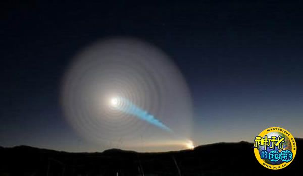 从另一个角度观看,它更像天空中出现的“虫洞”。但真实的情况却是俄罗斯军方导弹测试,据俄罗斯国防部称,当时在天空中形成的这一景象是由于此次导弹发射失败形成的奇特光线。这颗俄罗斯“布拉瓦”弹道测试弹发射之后,便呈螺旋状失去控制,并在空中形成神秘的螺旋效应。
