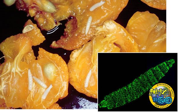 蛆浑身都生有光敏细胞 来源: 神秘的地球 时间:2010年11月16日 10:25 蛆浑身都生有光敏细胞 果蝇幼虫的短暂一生通常都会将头扎在一块腐烂的水果中贪食酵母。这是很危险的:如果不能看到太阳,它们很可能在环境中枯萎。幸运的是,这些蛆在它们脑后以及身体的其他许多地方都长了眼睛。研究人员在11月10日的《自然》杂志网络版上报告说,他们发现这些幼虫从头至尾都生有光敏细胞(绿色)。这些细胞对于明亮光线常见的波长特别敏感,从而使得蛆能够在被高温烘干之前钻到水果之中。 EurekAlert! 上一篇 下一篇 TAG: 蛆 光敏细胞