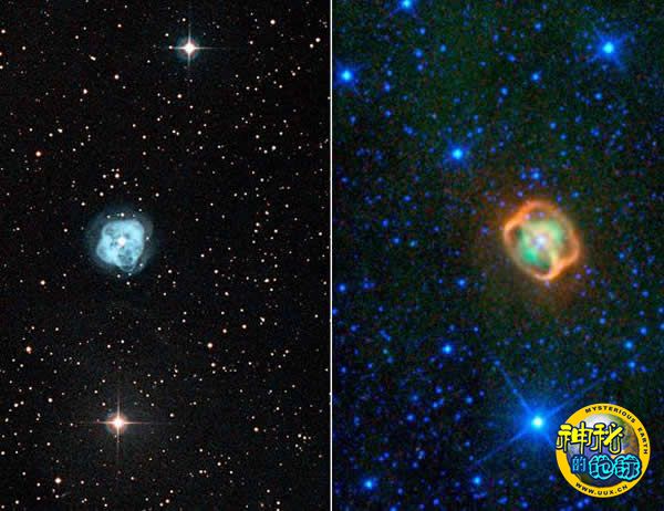 在可见光下,NGC 1514行星状星云就像灰白色水母一样穿行于茫茫宇宙。但在美宇航局广域红外线巡天探测卫星(WISE)拍摄的最新照片中,这只宇宙水母看上去就像被困于闪闪发光的“仓鼠滚轮”中。事实上,NGC 1514行星状星云由两个年代久远的恒星构成。一个是称为白矮星的恒星“遗体”。