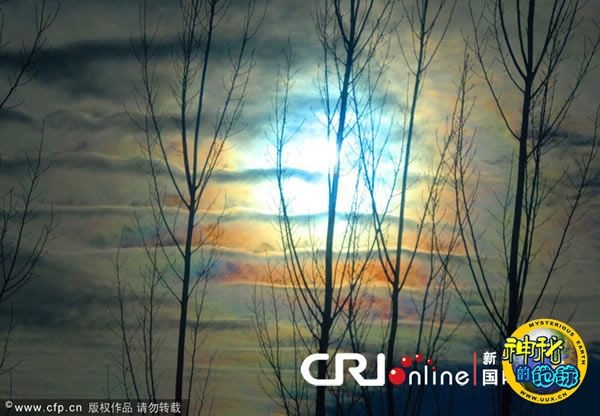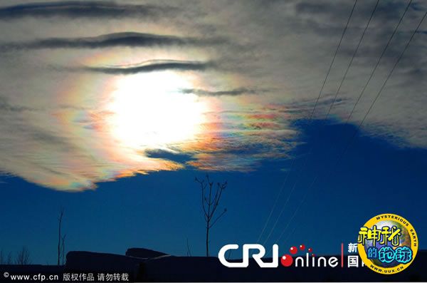 新疆阿勒泰市区上空出现五彩缤纷的彩云 来源: 神秘的地球 时间:2010年11月22日 22:33 新疆阿勒泰市区上空出现五彩缤纷的彩云 新疆阿勒泰市区上空出现五彩缤纷的彩云 2010年11月20日上午11时左右,新疆阿勒泰市区上空出现了一片五彩缤纷的彩云,十分引人注目。这一奇妙的景象持续了几分钟后,开始慢慢消失。 据了解,出现的彩云是太阳光线和云彩中的冰晶结构产生的光的折射现象,原理是在合适的天气状况下,太阳光正好和云构成一个合适的角度,太阳光通过云彩时,通过折射和反射作用,上空云彩内的水汽将太阳光谱分离,从而散射出七色光芒。 CFP 上一篇 下一篇