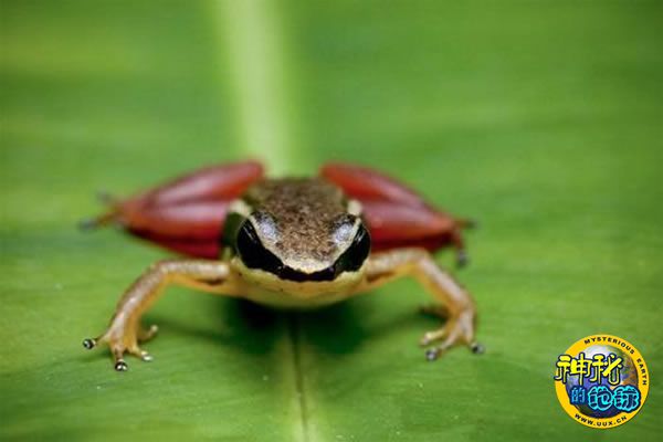 这种腿部长着“条纹”的青蛙被称为“火箭蛙”,属于Silverstoneia物种,是一种典型的毒箭蛙。火箭蛙体型较小,体长不足3厘米,它比其它体色明亮的青蛙物种的毒性更小。火箭蛙通常生活在溪流中,或者溪流附近,它会将新孵化的蝌蚪放在背部,然后运至完全适宜蝌蚪生存的水域。