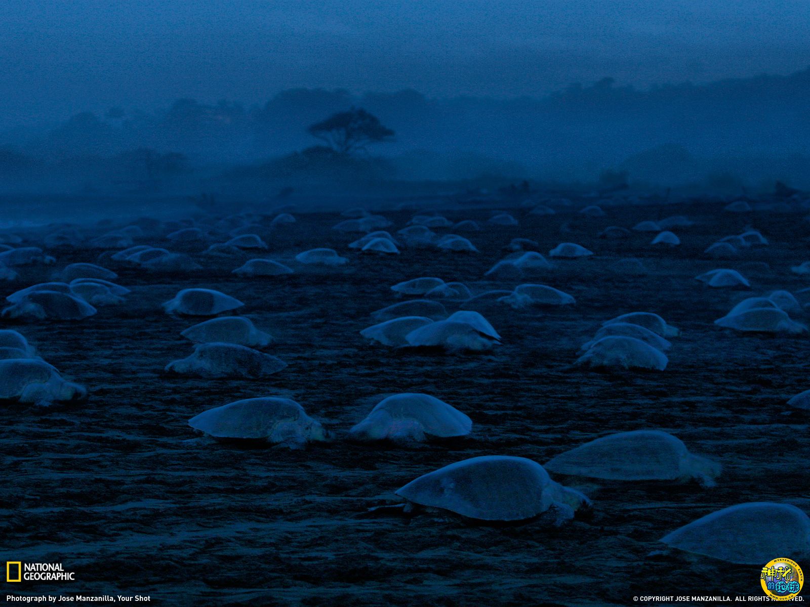 一群长吻飞旋海豚在夏威夷的马库阿海滩外海优游 (神秘的地球报道)摄影师Erika...