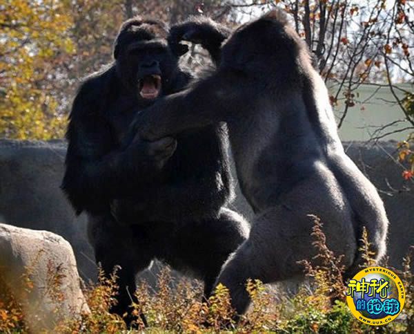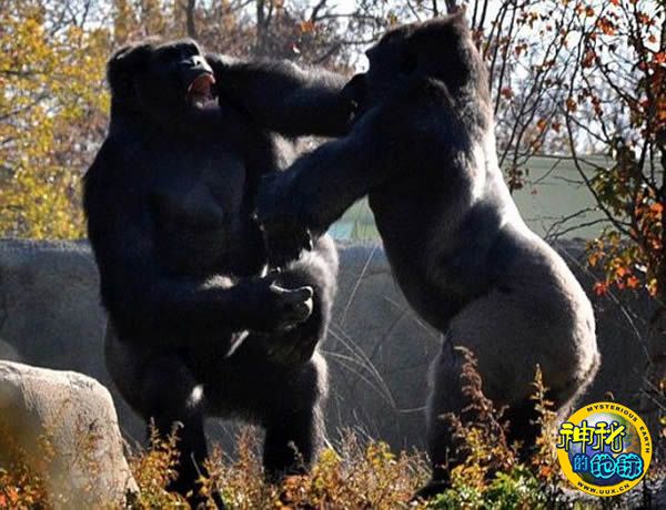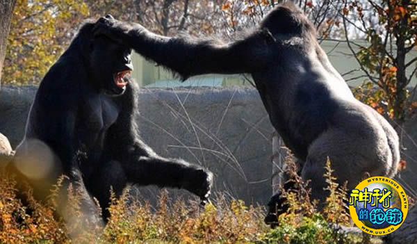 美国动物园年轻大猩猩为争夺统治地位和银背大猩猩首领大打出手