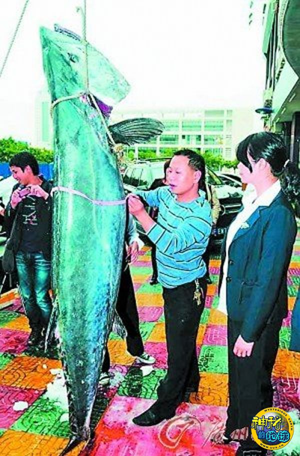 广东渔民捕获重达100公斤巨型马鲛鱼 来源: 神秘的地球 时间:2010年11月29日 10:19 广东渔民捕获重达100公斤巨型马鲛鱼 马鲛鱼一般体长为25至50厘米,体重300至1000克,但(广东)电白县博贺港渔民在海上捕获的一条体长为235厘米的巨型马鲛鱼,体重竟高达100公斤。 前日下午,这条巨型马鲛鱼运回到博贺中海渔村后,引来众多市民群众围观。 据介绍,这条巨型马鲛鱼是电白县博贺港渔民于25日在深海作业时捕获的,前日运回到博贺港。经测量,这条马鲛鱼身长235厘米,鱼身围120厘米,尾宽58厘米,重达100公斤。 广州日报 (记者关家玉 通讯员张翠玲、甘杨松 摄影报道) 上一篇 下一篇 TAG: 马鲛鱼