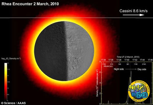 据英国每日邮报报道,近日,科学家最新研究宣称,土星第二大卫星——土卫五(Rhea)拥有稀薄大气层中含有氧气和二氧化碳。这是由美国宇航局“卡西尼-惠更斯”任务勘测发现的,这是宇宙探测器首次发现地球之外其它星球的大气层中存在氧气。
