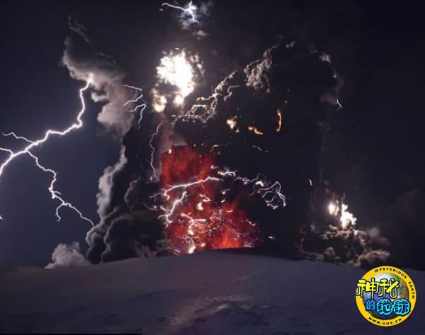 冰岛艾雅法拉火山喷出的大量火山灰里充满闪电。静电在云团里越积越多,最终形成闪电,释放出电荷