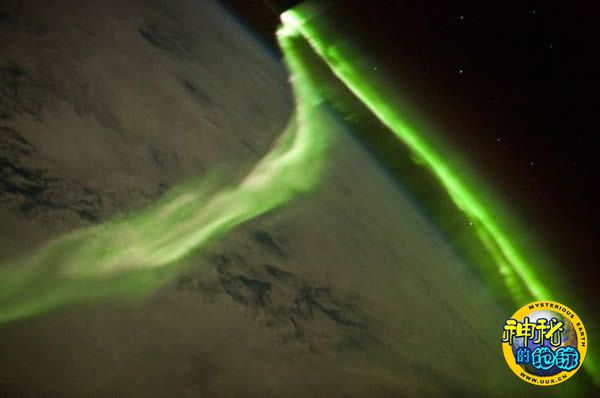 一道极光高悬在印度洋上空。即使对于天文学家了来说,这幅于5月拍摄的照片也极为罕见。极光在来自太阳的带电粒子轰击地球上层大气时出现,带电粒子轰击导致氧原子和氮原子获得能量并发光。通常情况下,只有在极地附近才能看到极光,极地地区的磁场线引导带电粒子飞向地球。这一次的南极光——在国际空间站拍摄——出现于地磁暴发生期间,地磁暴暂时改变了地球的磁场,导致极光更靠近赤道。这幅照片最初刊登于标题为“本周最佳太空图片:古怪极光和太阳耀斑”的文章中。