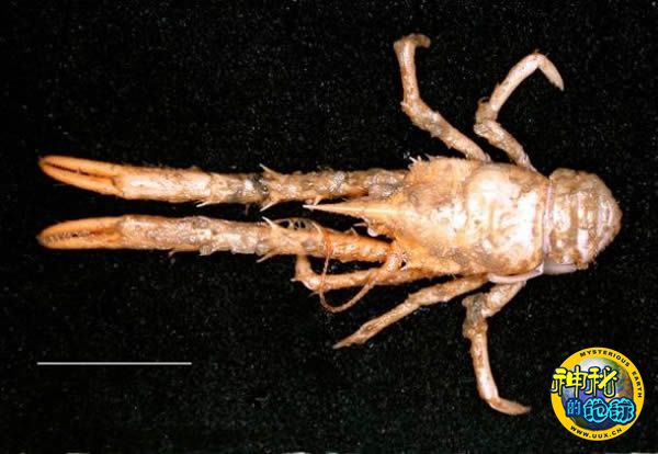 澳大利亚发现新种东方扁虾 来源: 神秘的地球 时间:2010年12月03日 11:08 5.死亡之钳 死亡之钳(图片来源:Joanne Taylor) 在此之前,科学家就曾在澳大利亚海域发现这种学名“Munidopsis kenselyi”的东方扁虾。在最近进行的科学考察中,科学家又发现这种东方扁虾的分布范围超出此前的预计。与其他东方扁虾种群一样,Munidopsis kenselyi令人畏惧的爪子可能帮助它们捕获猎物或者震慑同类中的雄性竞争者。泰勒指出:“它们的爪子可能还有另一个用途。一些种群的雄性在与雌性交配时会用爪子深情地抱住对方……我们希望那是一种深情的拥抱。” 上一页123456下一页 上一篇 下一篇