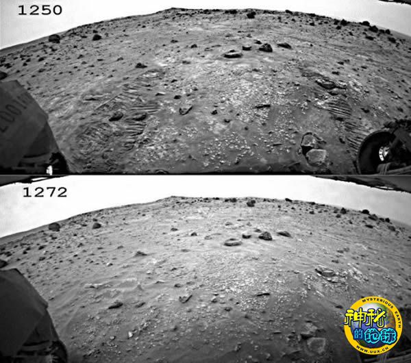 人类探索太阳系之旅中留下的痕迹 来源: 神秘的地球 时间:2010年12月07日 17:18 4.火星尘埃 火星尘埃 2007年7月,一场波及整个火星的尘暴充分展示了火星大风的破坏力。在等待尘暴消失以前,“勇气”号探测器在大概相当于地球上一个月的时间里一动不动,期间,利用安装在后面的相机拍摄了这些照片。由于风力过大,“勇气”号的相机被灰尘所覆盖。在最上面的那张图,“勇气”号的车辙痕迹非常清晰,但在22个火星日过去以后,它们被完全抹去,取而代之的是从别处吹过来的土壤。 1...上一页234567891011下一页 上一篇 下一篇