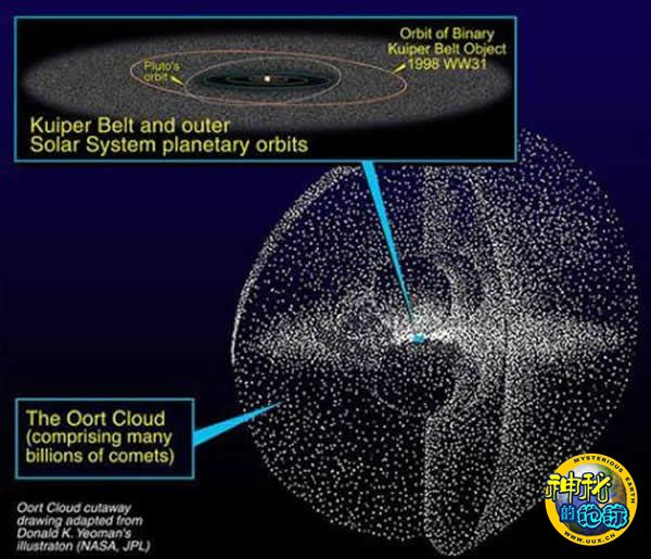 美国宇航局的一幅图解,展现了奥尔特云如何包围我们的太阳系。科学家认为一颗质量巨大的天体可能导致奥尔特云内的彗星飞向地球。