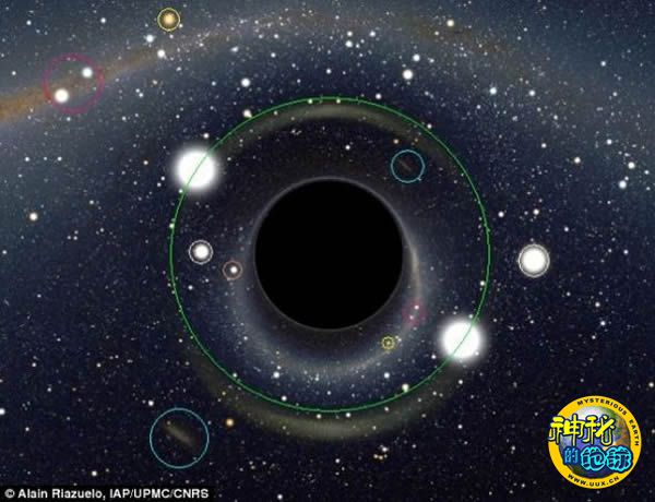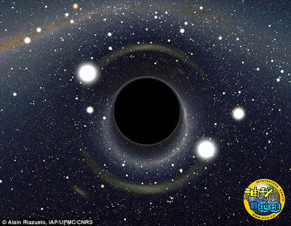 黑洞被认为是物质密度达到极限的状态。目前人们已经掌握了间接的证据来证明它们存在于双星系统、球状星团、星系以及类星体的核心部位。来自法国巴黎天体物理研究院的阿兰·莱阿祖罗(Alain Riazuelo)说:“如果你站在一个黑洞的上空,这就是你会见到的情景。这是一张计算机图像,像你展示身临黑洞附近时将会目睹的奇景。”
