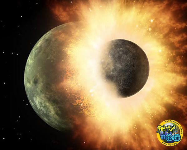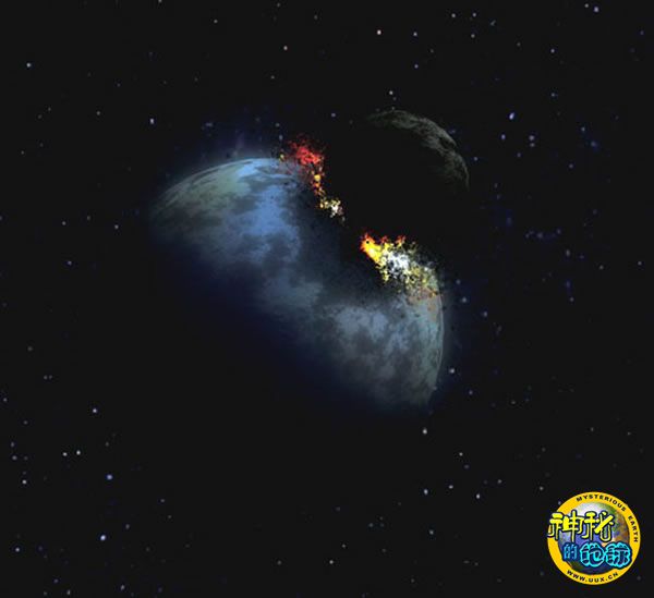 月球遭受一颗类似水星大小的星体碰撞,在太阳系行星形成的最后阶段普通存在猛烈的星体碰撞现象