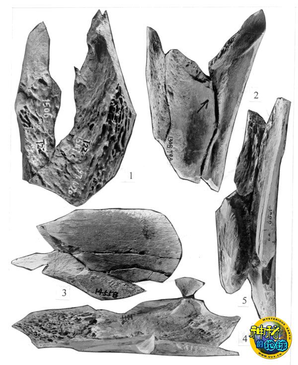 东方广场遗址骨制品和骨头的拼合 1和3:2件标本的拼合; 2:3件标本的拼合;4和5:5件标本的拼合