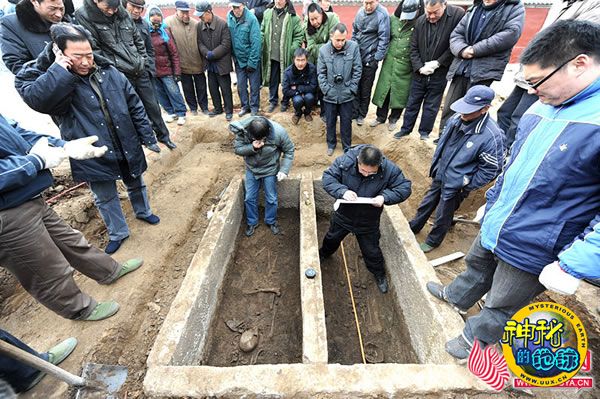 古墓发掘吸引了众多村民前来观看