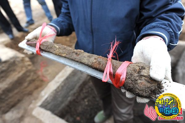 很快考古队员在南侧墓室内发现了一个头骨,不过由于年代久远已经碎裂。紧接着北室的考古队员也有了新发现,一把长剑模样的器物出现在众人眼前,考古专家经过仔细鉴定,断定这是一把环首刀,而且在我市发现的古墓中不太常见。据资料记载,环首刀出现在西汉时期,是由钢经过反复锻打和淬火后制作出来的直刃长刀,是当时世界上最为先进、杀伤力最强的近身冷兵器。这把环首刀表面锈蚀比较严重,锈蚀部分为刀鞘和刀柄的圆环,为了做进一步的鉴定,考古人员用木板对刀身进行了固定保存。